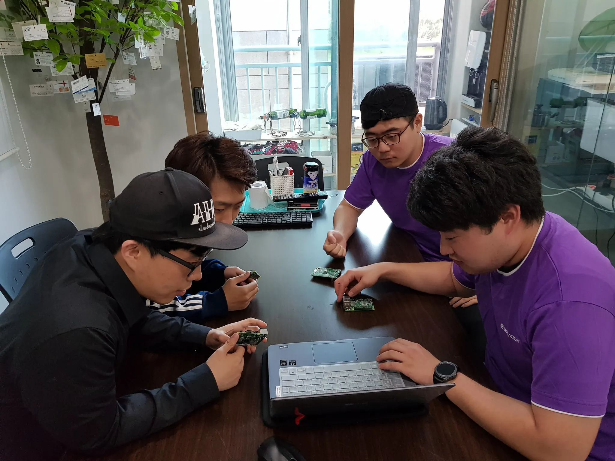 남들이 인정해준 기술력과 인적 인프라를 보유하고 있었고, 그 만큼의 정당한 대가를 요구했지만, 그 만큼 한국의 소프트웨어 인식이 좋지 못했던것 같습니다. 하지만 우리는 여기서 더 나아가 하드웨어도 우리가 직접 해보자를 통해 새로운 분야에 도전하게 되었습니다. 회로설계나 PCB Artwork등은 IoT기반의 서비스를 제품화하기 위해 반드시 필요한 과정 이었고, 단편적으로 전자공학등과 같은 이론 이외에 경험적 노하우나 환경적 요인이 많았습니다. 또한, 이러한 내용들을 구체적으로 알려주는 루트없이 오롯이 실무경험을 통해 배울 수 밖에 없다는 걸 알게 되었습니다. 그때 당시 거래처 대표님들, 거래처 대표님들의 아는 대표님들, 건너건너 아는 엔지니어등 수 많은 사람들을 직접 바짓가랑이 붙잡고 따라다니며 기술을 배우게 되었고, 20대의 젊은 학생 창업가의 이미지 덕분인지 선뜻 많은 분들이 도와주셨습니다. 함께 일하는 직원들 또한 투자를 아끼지 않은 경영방침과 즐겁게 일하는 분위기 때문인지 적극적으로 나서서 새로운 기술을 함께 빠르게 습득해 나갔습니다.